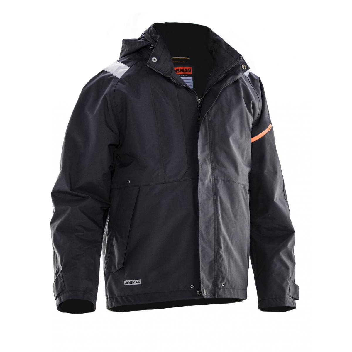 Skaljacka som är vattentät i slitstark polyamid. Inrullad huva med reflexpasspoal. Reflexer på oket. Bröstficka med ID-kortsfack. Napoleonficka på bröstet. Innerfickor med blixtlås och telefonfack. Stora framfickor. Reglerbar i midja, nederkant och ärmslut. Vattenpelare: 16000 mm. Andasfunktion: 9700 g/m² 24h.