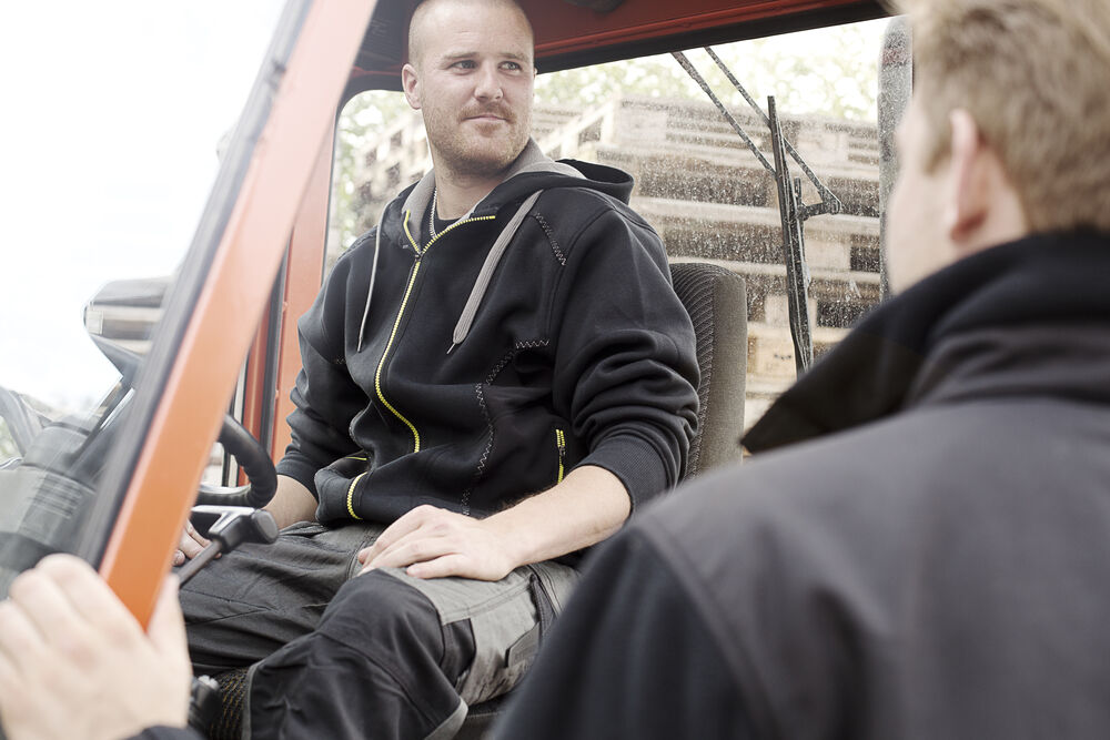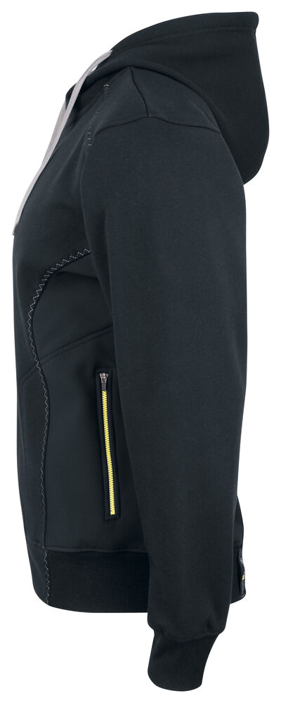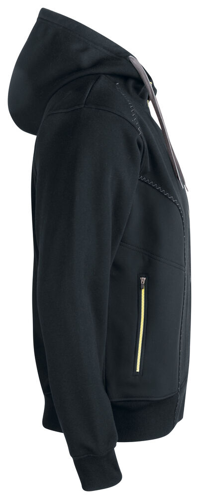 Hoodjacka med softshellförstärkningar i sidorna för ökad slitstyrka. Sömmar i kontrastfärg för en snygg detalj. Ruggad insida för en mjuk och skön känsla. Sidfickor med dragkedja. Reglerbar huva med dragsko. Ribbstickad mudd i nederkant samt ärmslut.