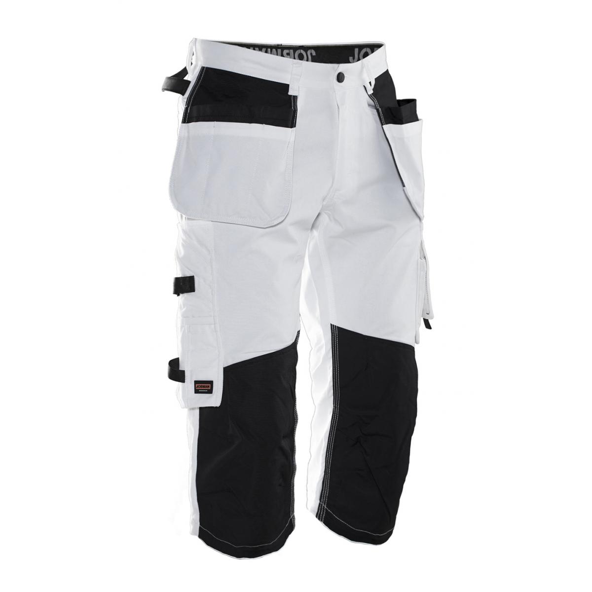 Piratbyxa med utmärkt passform och design utvecklad för yrkesverksamma målare. Jobmans bomullstwill har goda egenskaper, den är slitstark, absorberar färg och minimerar genomblödning. Piratbyxa är försedd med rymliga hölsterfickor, den inre fickans insida är fodrade med vattenavvisande FA™ polyamid. Rymliga fram och bakfickor, benficka med extra fack och blixtlås, mobilficka samt ID-kortsfack. Kniv och tumstocksficka med användbara fack för alla tänkbara måleriverktyg. Piratbyxan har en ögla för trasa. Tål 85 grader tvätt. Knäfickor i slitstarka FA™ polyamid med två positioner för knäskydd.