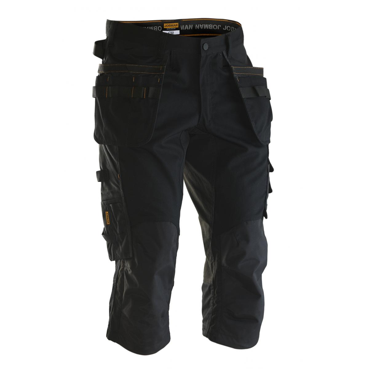 Smidig piratbyxa i hållbar kavalleri twill med paneler i form av grenkil i stretch Cordura® som ger extra rörlighet. Knäskyddsfickor med sidpaneler i stretch Cordura®. Förböjda knän i slitstark FA™ med två höjdnivåer för knäskydd. Rymliga hölsterfickor med extrafack och förstärkt insida som kan stoppas ned i framfickorna. Extra hällor för bältet på de största storlekarna. Hammarhank. Tumstocksficka med knivhållare. Snedställd benficka med blixtlås, telefonfack, ID-kortsfack och extra fack. Dragsko i benslutet.