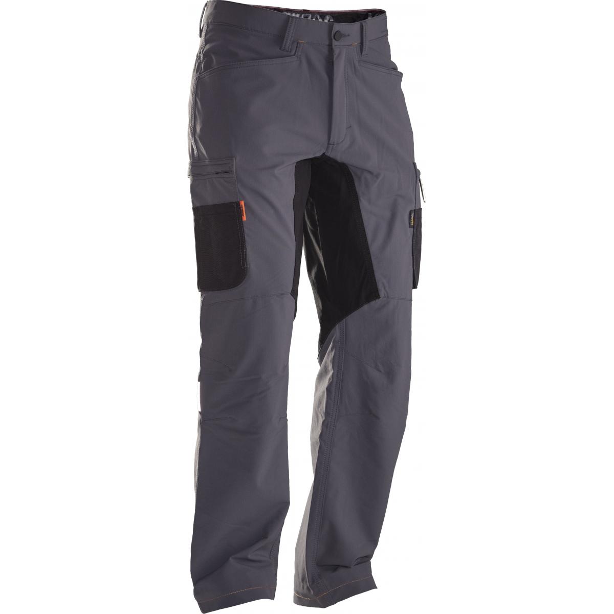 Smidig 4-vägs stretch i slitstarkt Rip-stop material. Grenkil med förstärkt stretch Cordura®. Silikonbandet i byxlinningen håller byxan på plats. Extra hällor för bältet på de största storlekarna. Rymliga framfickor och stolpfickor bak. Rymliga benfickor med täckta blixtlås och mobilficka. Förböjda knän med knäskyddsfickor med öppning från insidan i två nivåer. Mesh i knävecken för ventilation. Förstärkningar i Cordura® och polyamid.