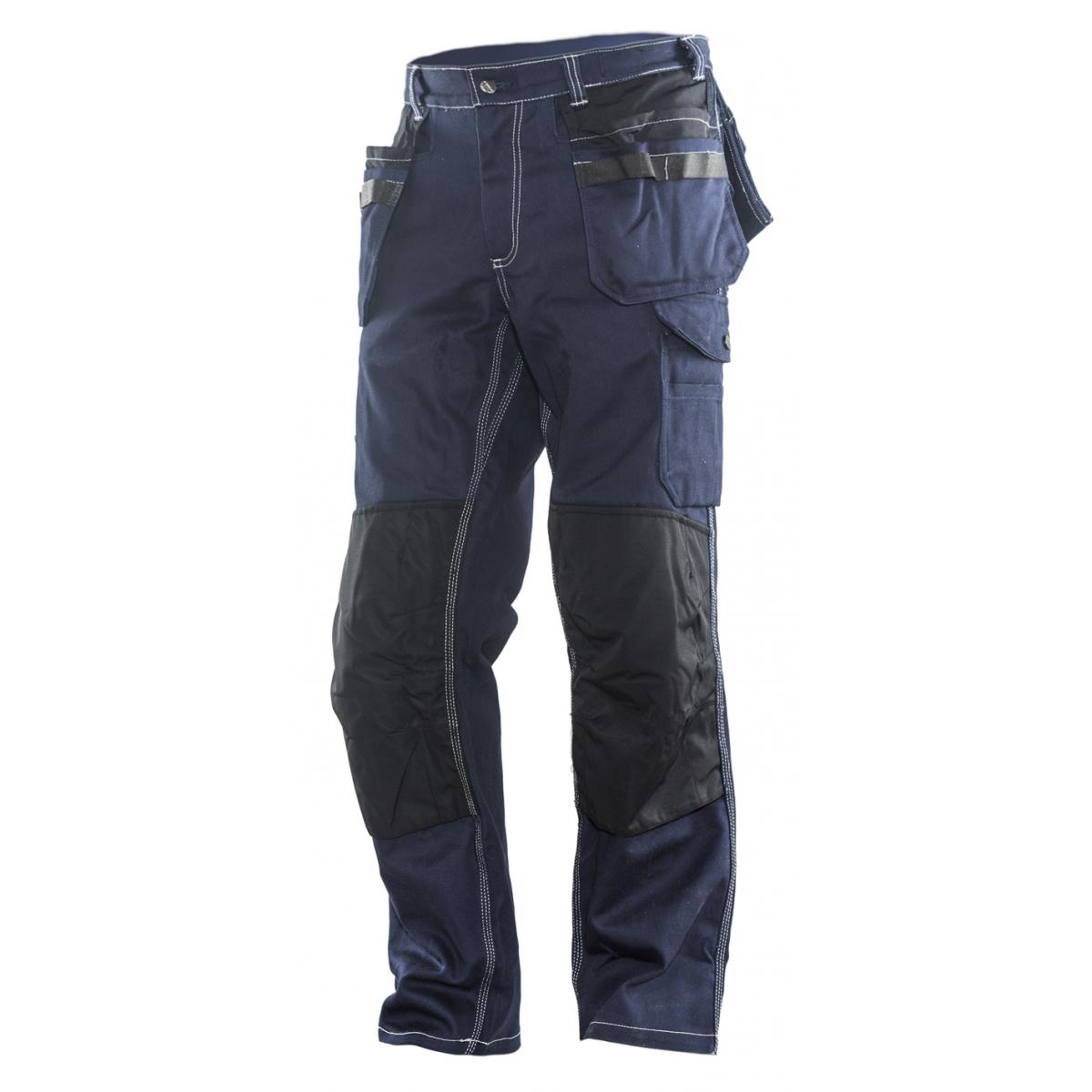 Förstärkningar i polyamid på hölsterfickor, bakfickor, tumstocksficka och knäskyddsfickor. Telefonficka på höften. Rymliga hölsterfickor med extrafack och förstärkt insida. Insydda framfickor som hölsterfickorna kan stoppas ned i. Hammarhank. Bakfickor med förstärkt insida. Framflyttad förstärkt tumstocksficka med lös nederkant och knivknapp. Benficka med telefonfack. Kil i grenen. Förböjda knän med knäfickor i slitstark polyamid. Knäskyddsfickor med två höjdnivåer. Byxan finns även som dammodell, 2201.