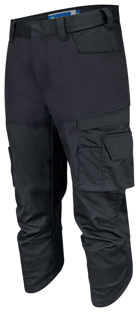 Piratbyxa i full stretch med modern, smal passform vilket gör att byxan upplevs rörlig trots slimmad passform. Benfickor med övervidd och dragkedja på båda sidor, även telefonficka på båda sidor. Tumstocksficka på höger sida. Infällda bakfickor. Bredare bälteshälla baktill för att undvika tryck från bälte vid ryggslut. Förböjda knän. Knäskyddsfickor som går att reglera i två höjder, öppning inifrån. D-ring fram. Dolda fästen för hängfickor i linningen (ref. art 9042). Dold midjeknapp.