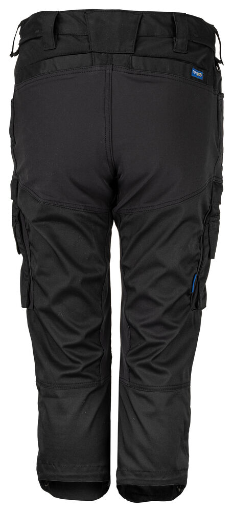 Piratbyxa i full stretch med modern, smal passform vilket gör att byxan upplevs rörlig trots slimmad passform. Benfickor med övervidd och dragkedja på båda sidor, även telefonficka på båda sidor. Tumstocksficka på höger sida. Infällda bakfickor. Bredare bälteshälla baktill för att undvika tryck från bälte vid ryggslut. Förböjda knän. Knäskyddsfickor som går att reglera i två höjder, öppning inifrån. D-ring fram. Dolda fästen för hängfickor i linningen (ref. art 9042). Dold midjeknapp.