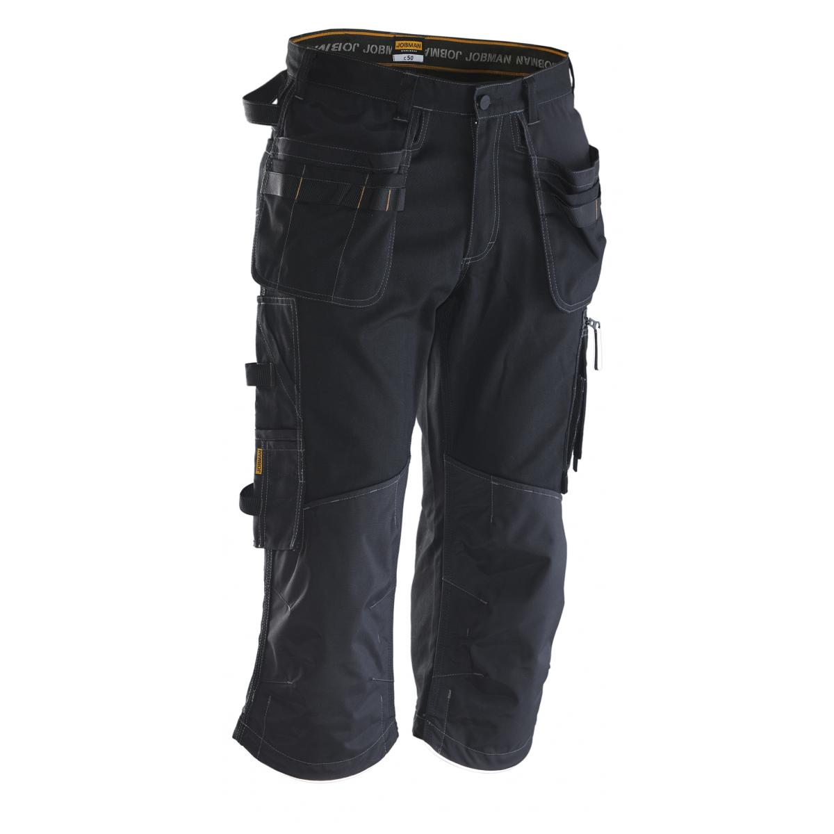 Förstärkta detaljer som hölsterfickor, bakfickor och tumstocksficka. Rymliga hölsterfickor som kan stoppas ned i framfickorna. Rymliga framfickor. Bakfickor med förstärkt insida. Hammarhank. Extra hällor för bältet på de största storlekarna. Tumstocksficka med knivhållare. Benficka med blixtlås, telefonfack, ID-kortshållare och extrafack. Förböjda knän för optimal passform. Knäskyddsfickor i slitstark polyamid med reflexpasspoaler och två höjdnivåer för knäskydden. Reflexpasspoal och dragsko i benslutet.
