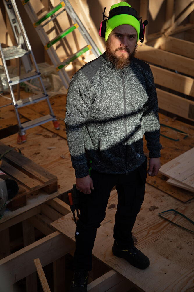 Jacka i kraftig fleece med extra förstärkning över axlar samt armbågar för ökad slitstyrka. Sidfickor på båda sidor som försluts med dragkedja. Tvåvägsdragkedja framtill med hakskydd för att förhindra skav mot hakan. Förlängd rygg. Tumgrepp i ärmslut.