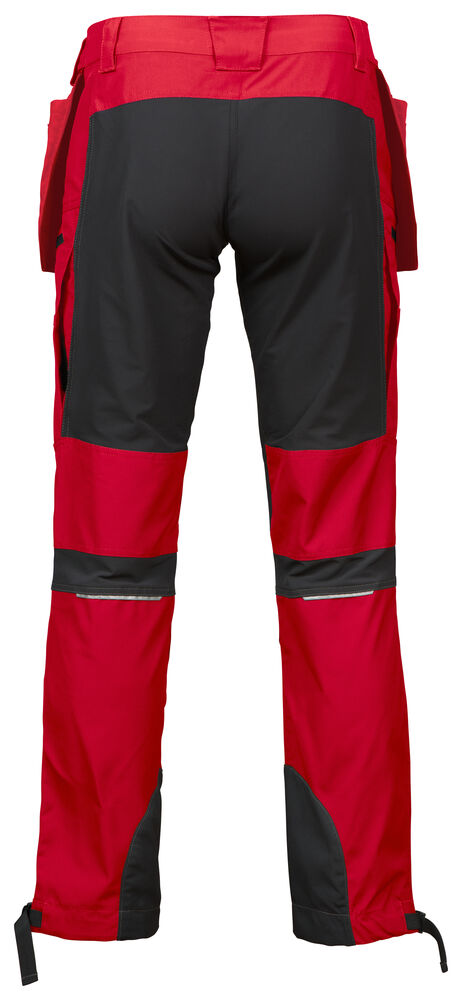 Funktionsbyxa med stretchpaneler på strategiska ställen, så som över sätet och baksida knä. Ventilationskanaler på utsida ben. Avtagbara hängfickor, förstärkta invändigt med Cordura®. Reflexdetalj på baksida knä. Benfickor med dragkedja, båda med D-ring. Förböjda knän. Knäskyddsfickor som går att reglera i två höjder, öppning inifrån. Förstärkta med Cordura® i bensluten för ökad slitstyrka. Reglerbara benslut med dragsko. Bredare bälteshälla baktill för att undvika tryck från bälte vid ryggslut.