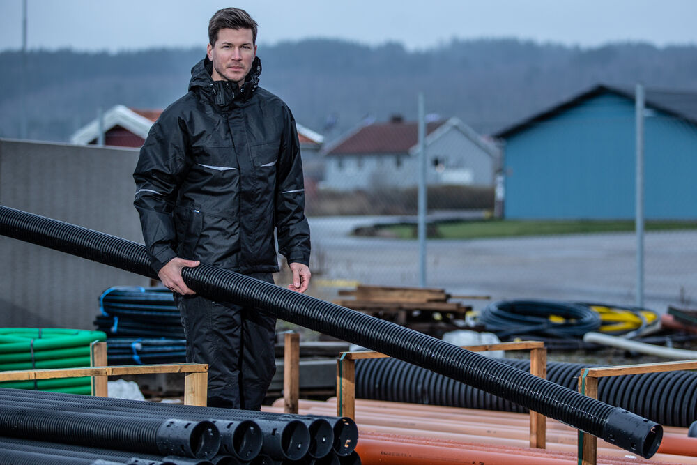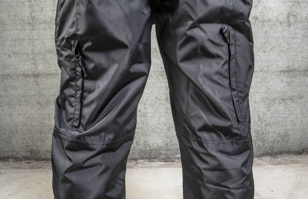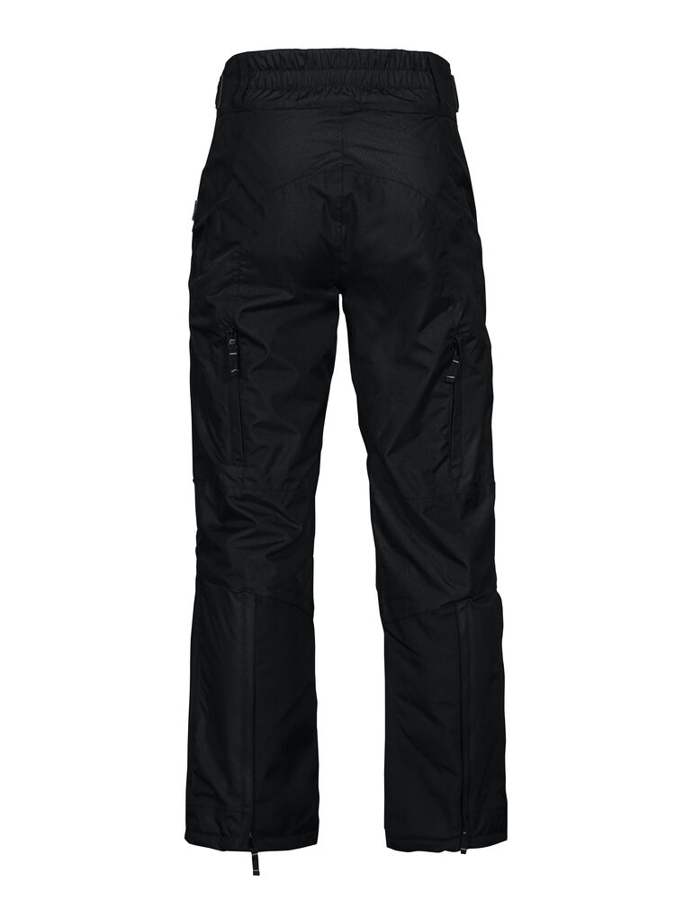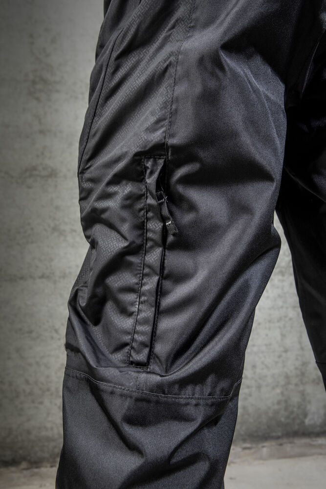 Fodrad byxa i vind- och vattentätt material. Tejpade sömmar. Ventilationskanaler på baksida ben, med meshfoder. Sidfickor med dragkedja på båda sidor. Extra hög midja för att undvika glipor, även reglerbar med kardborre på båda sidor. Dragkedja upp till knät baktill för att underlätta av- och påtagning. Förstärkta över knä och insida ben för ökad slitstyrka. Förböjda knän. Knäskyddsfickor som går att reglera i två höjder, öppning inifrån.
