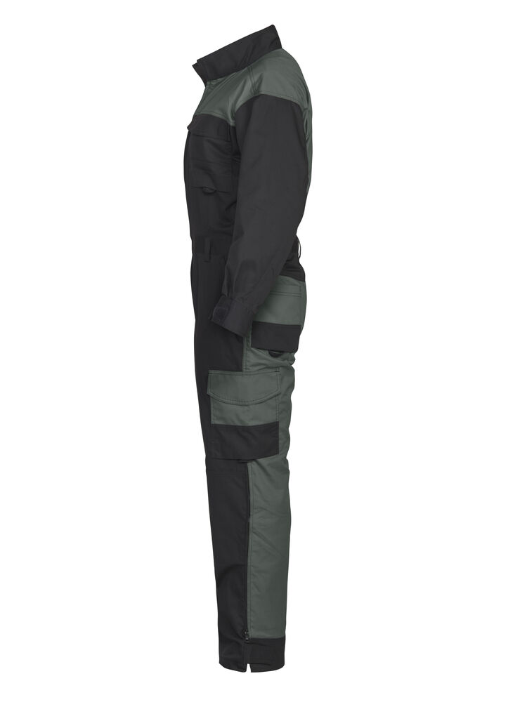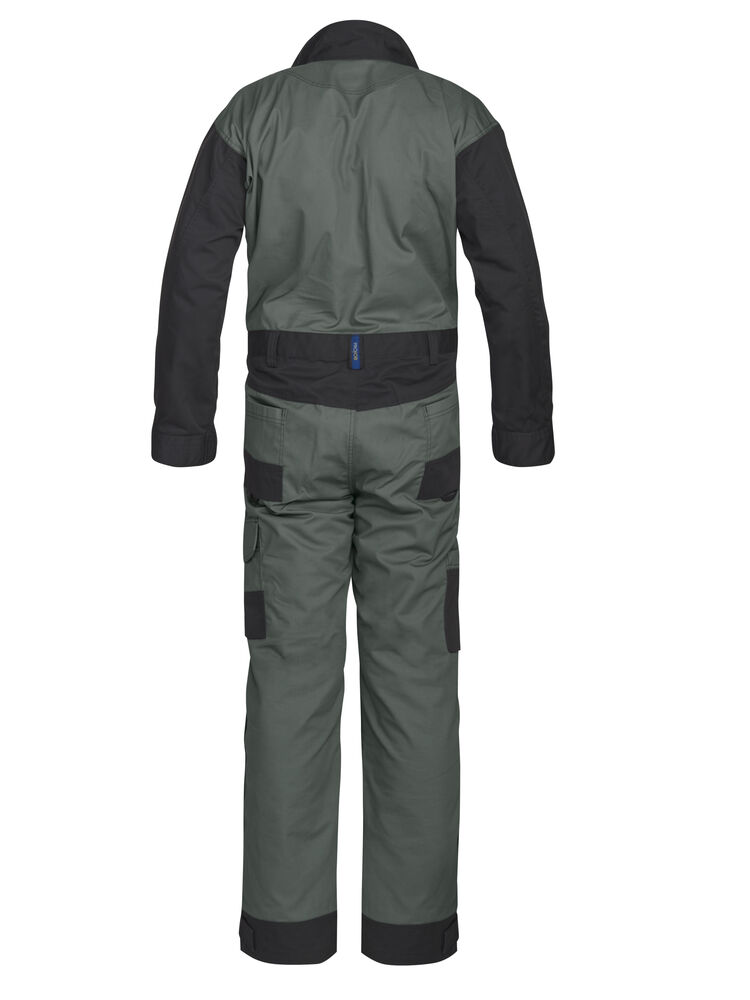 Overall med tvåvägsdragkedja framtill som går upp till kragen. Bröstfickor med lock och kardborreförslutning på båda sidor, invändigt fäste för ID-kort på den högra sidan. Rymliga sidfickor, den högra med insydd säkerhetsficka med dragkedja. Benfickor, på vänster sida en stor ficka med lock, försluts med kardborre, även en invändig telefonficka. På höger sida fickor för pennor, verktyg och även tumstock. Bakfickor. Reglerbar i midja med invändig resår, även reglerbara benslut och ärmslut med kardborre. Bälteshällor i midja. Dragkedja i bensidorna upp till knä för att underlätta av- och påtagning. Knäskyddsfickor som går att reglera i två höjder, öppning inifrån. xx