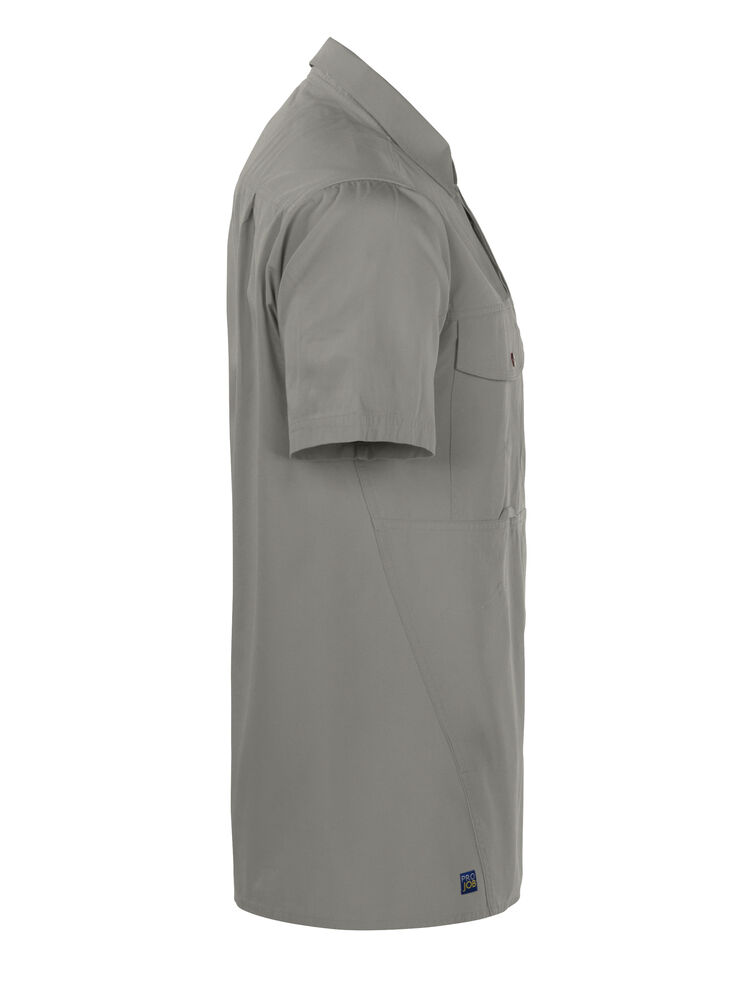 Kortärmad mångfunktionell skjorta i bomull. Dold knäppning framtill med tryckknappar. Två stora bröstfickor med lock, även två dolda fickor försedda med dragkedjor. Ärmkonstruktion och motveck i rygg för bästa rörelsefrihet.