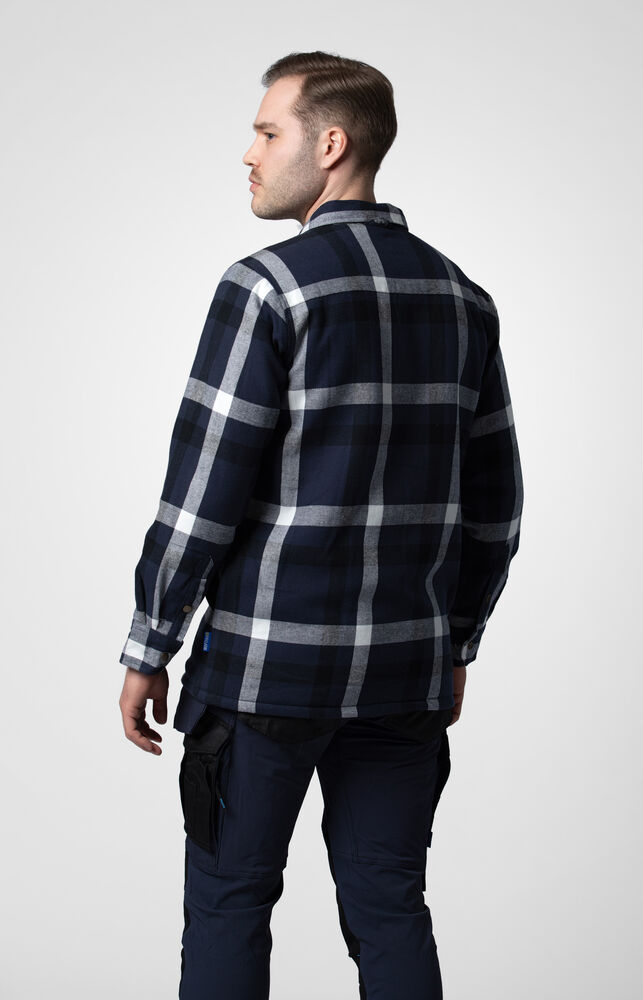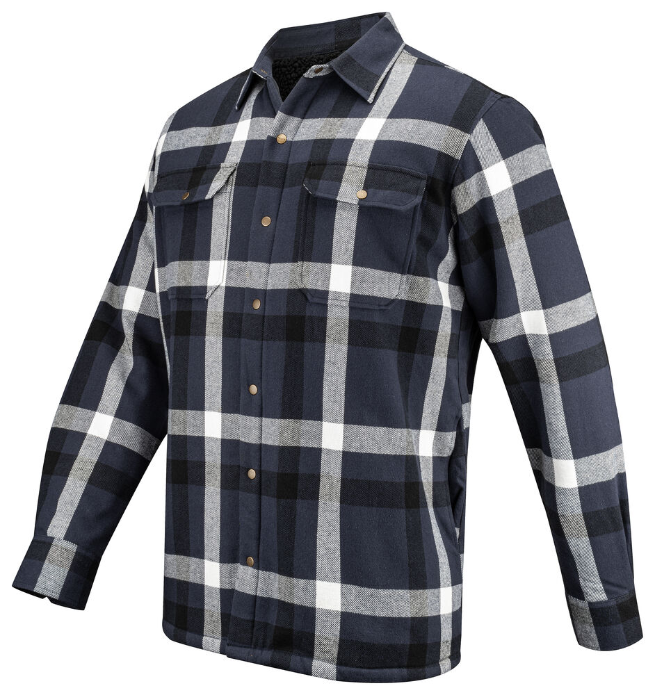 Flanellskjorta med värmande piléfoder. Två stora bröstfickor med lock, skjortan har även sidfickor på båda sidor. Reglerbara manchetter i ärmsluten med två knappar för justerbar vidd. Samtliga knappar på skjortan är tryckknappar. Skjortan är tillverkad i en mjuk bomullsflanell med ruggad utsida.