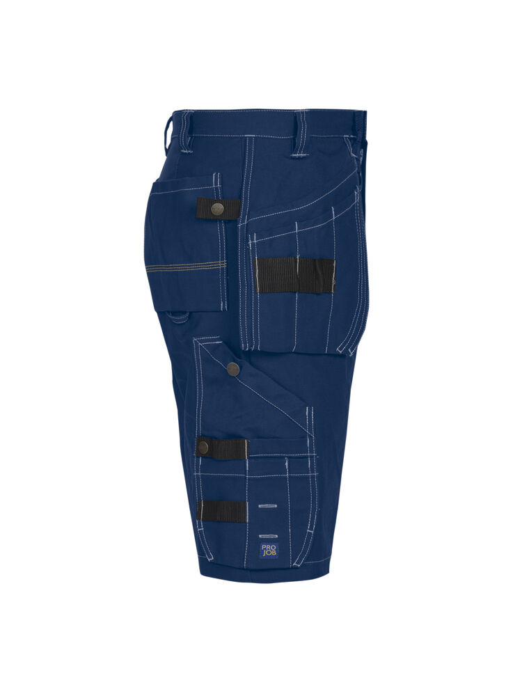 Klassiska hantverksshorts i slitstark bomull. Undanstoppningsbara hängfickor med förstärkningar i Cordura® för ökad slitstyrka, den ena med extra fickor och den andra med hållare för verktyg. Benfickor, på vänster sida ficka med lock som försluts med tryckknapp, invändig telefonficka samt fäste för ID-kort. På höger sida ficka för tumstock samt verktygsficka med knivknapp. Bakfickor med övervidd. Två reglerbara hammarhankar samt två D-ringar, fästa i linningen. XX