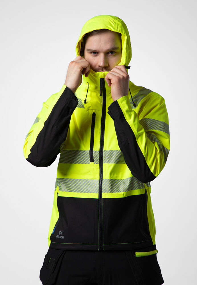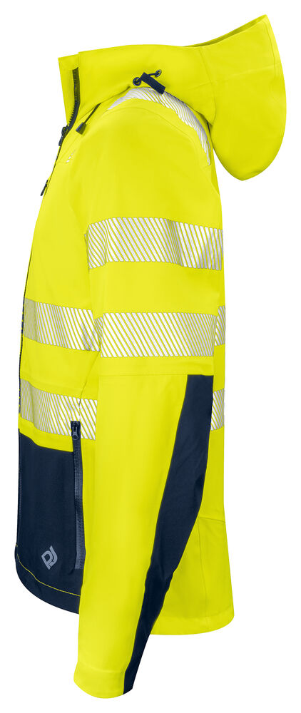 Skaljacka som är helt vind- och vattentät med god andningsförmåga. VentAir-materialet i tre lager släpper ut fukt och överflödig värme och står emot regn och blåst. Tejpade sömmar. Vattentäta dragkedjor, dragkedjan framtill har invändig vindslå för att förhindra vinddrag samt att väta tränger in, även hakskydd för att förhindra skav. Hög krage framtill. Bröstficka på höger sida med invändigt fäste för ID-kort. Sidfickor. Förlängd i rygg. Huvan är reglerbar i två lägen, samt konstruerad för att passa över en hjälm. Reglerbar midja med snodd och reglerbara ärmslut med kardborre.