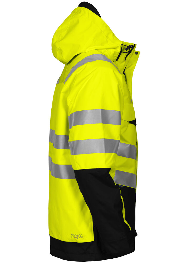 Vind- och vattentät fodrad jacka. Tejpade sömmar. Quiltat innerfoder. Tvåvägsdragkedja framtill med utvändig vindslå för att förhindra vinddrag samt att vatten tränger in, försluts med tryckknappar. Fleecefoder i kragen för ökad komfort. Bröstfickor på båda sidor med dragkedja, fodrade invändigt med fleece, den vänstra med invändigt fäste för ID-kort. Sidfickor med dragkedja, fodrade invändigt med fleece. Rymliga innerfickor med dragkedja, den vänstra med telefonficka som försluts med kardborre. Reglerbar huva i två lägen, huvan är även avtagbar. Reglerbara ärmslut med kardborre. Reglerbar i midja samt jackslut med snodd. Fodret är öppningsbart för att underlätta förädling. xx