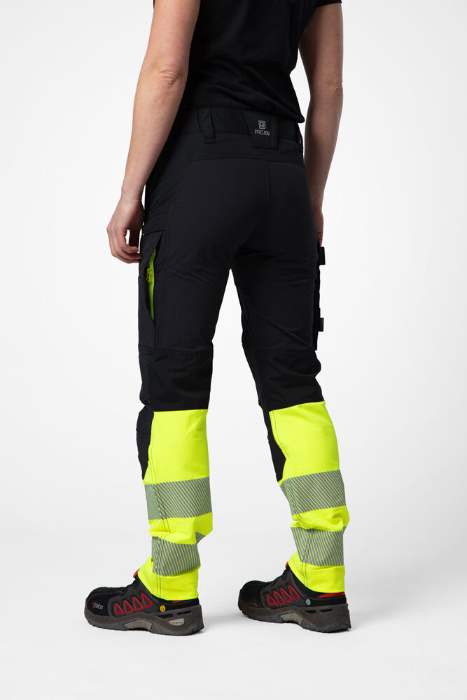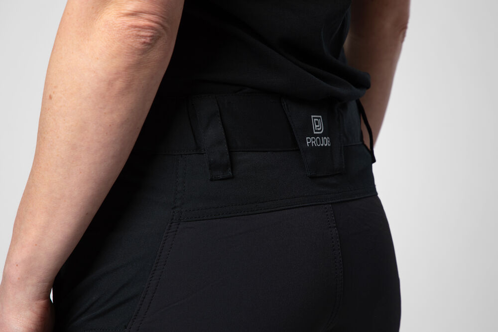 Servicebyxa i full stretch för optimal rörelsefrihet och passform, även insydd stretch i sidorna upptill för komfort. Benfickor med dragkedja, den vänstra med invändig mobilficka och den högra med hållare för ID-kort. På höger sida finns även tumstocks- och verktygsficka med knivknapp. Ventilationskanaler på utsida ben. Bredare bälteshälla baktill för att undvika tryck från bälte vid ryggslut. Knäskyddsfickor som går att reglera i två höjder, öppning inifrån. Byxan kan förlängas 5 cm genom ett utvik i benslutet.