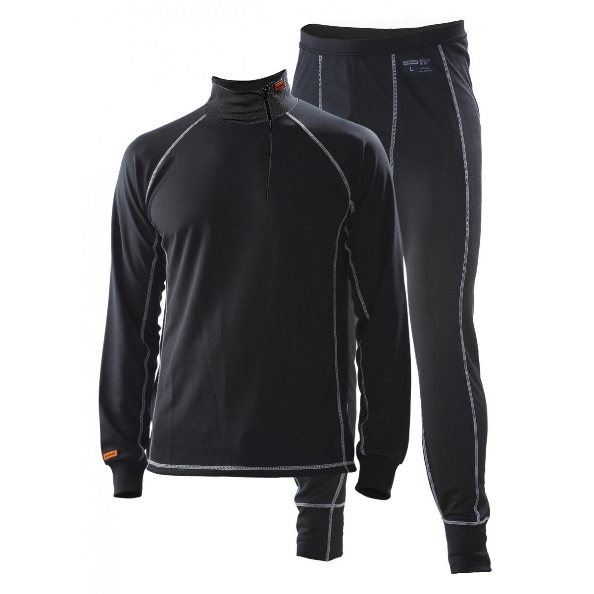 Tröja med förlängd rygg och polokrage med snett blixtlås som inte skaver på halsen. Långkalsong med Y-front. Elastiska sidpartier. Materialet Dry-Tech™ är utmärkt som lager 1 enligt lager-på-lager principen. Det är uppbyggt av mikrofibrer som transporterar bort svett från kroppen och sprider den till en större yta, s k ”Wicking effect”. De mikroskopiska svettpartiklarna dunstar därefter blixtsnabbt. Kroppen förblir torr och man känner sig fräsch hela dagen.