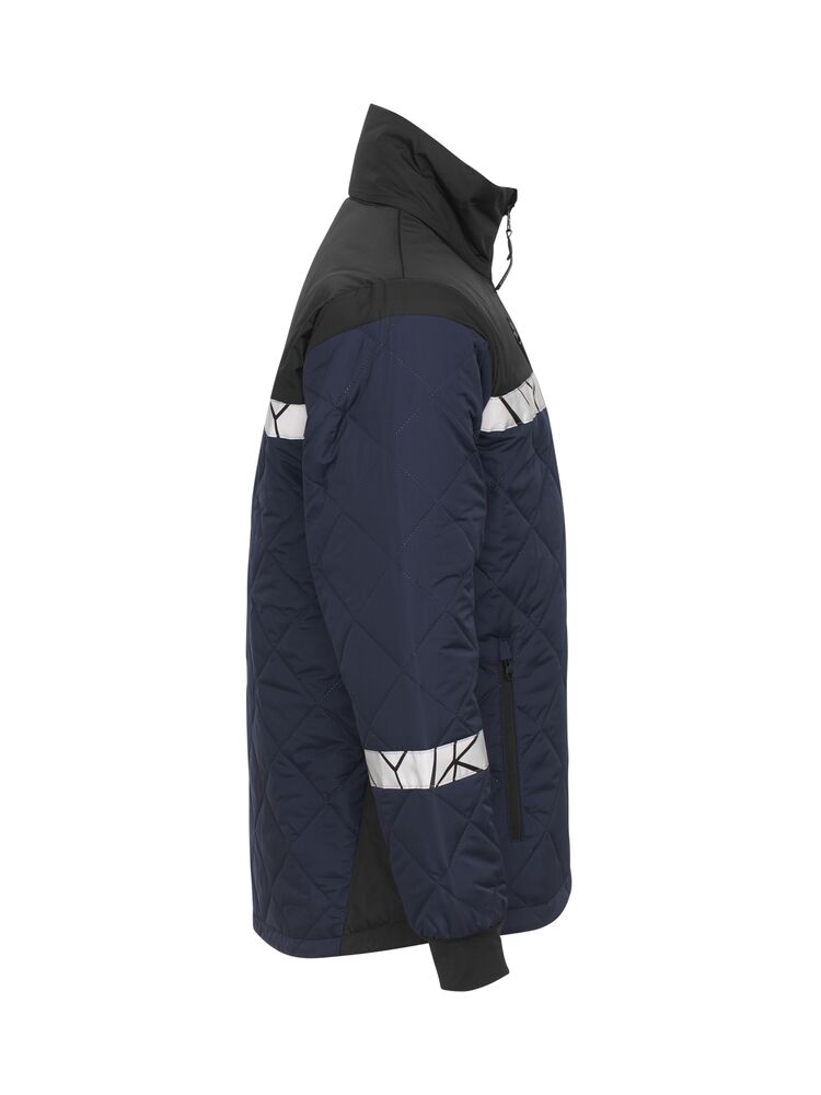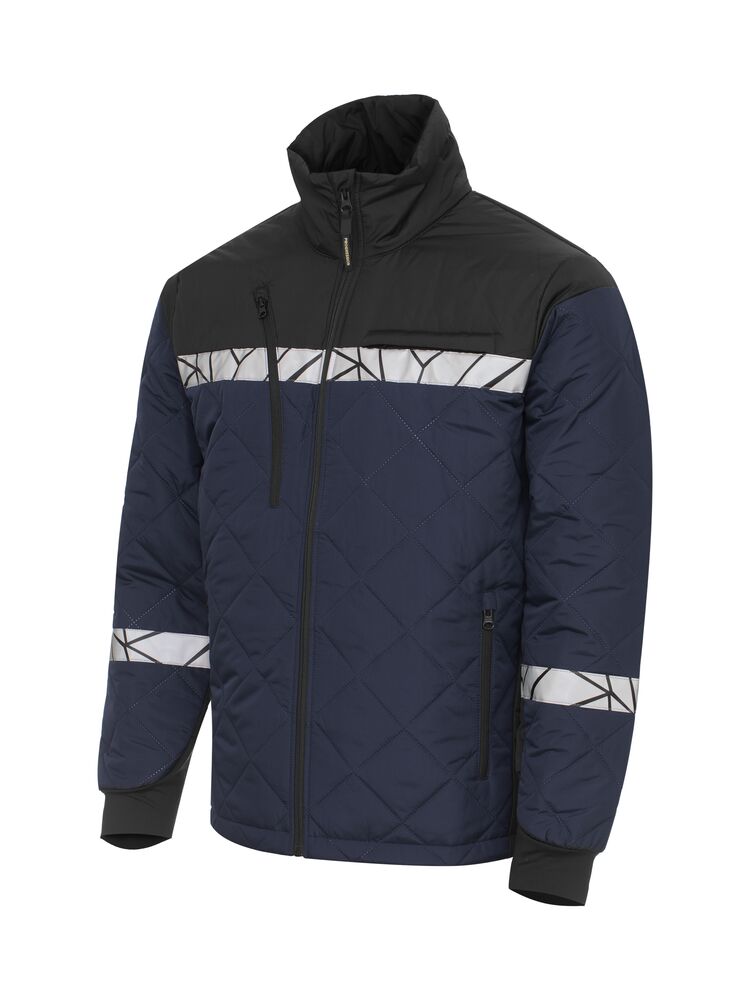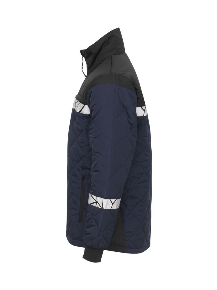 Vadderad jacka i ett lätt, diamantquiltat material. Bröstfickor på båda sidor med dragkedja, vänster sida med inbyggt fäste för ID-kort. Sidfickor på båda sidor med dragkedja, även öppna innerfickor för dokument etc. I den inre vänstra sidosömmen finns en tvättchipficka.