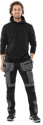 Reglerbar fodrad huva med dragsko / Känguruficka / Muddar i ärmslut och nederkant / Borstad insida / OEKO-TEX®-certifierad.