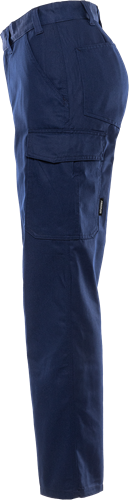 2 framfickor / 2 bakfickor, varav en med lock / Dold plastknapp fram / Benficka med invändig tumstocksficka – bekvämt placerad över sidsömmen – och tre extra fickor / Benficka och telefonficka med lock / 3-nålssömmar / Testad för industritvätt enligt ISO 15797 / OEKO-TEX®-certifierad.