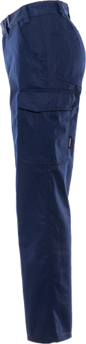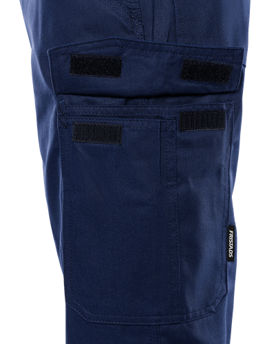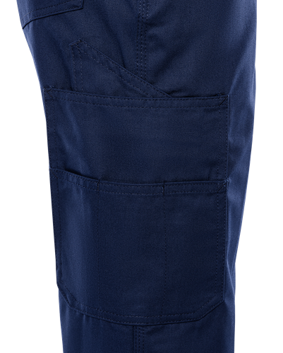 2 framfickor / 2 bakfickor, varav en med lock / Dold plastknapp fram / Benficka med invändig tumstocksficka – bekvämt placerad över sidsömmen – och tre extra fickor / Benficka och telefonficka med lock / 3-nålssömmar / Testad för industritvätt enligt ISO 15797 / OEKO-TEX®-certifierad.