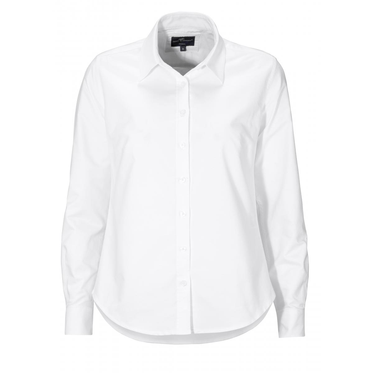 Skjorta i oxfordväv med pärlemoknappar. Brodyr som går ton i ton i nacke. Herrmodellerna har button down-krage, comfort har bröstficka. Damodellen har turn down-krage och är insvängd för bättre passform.