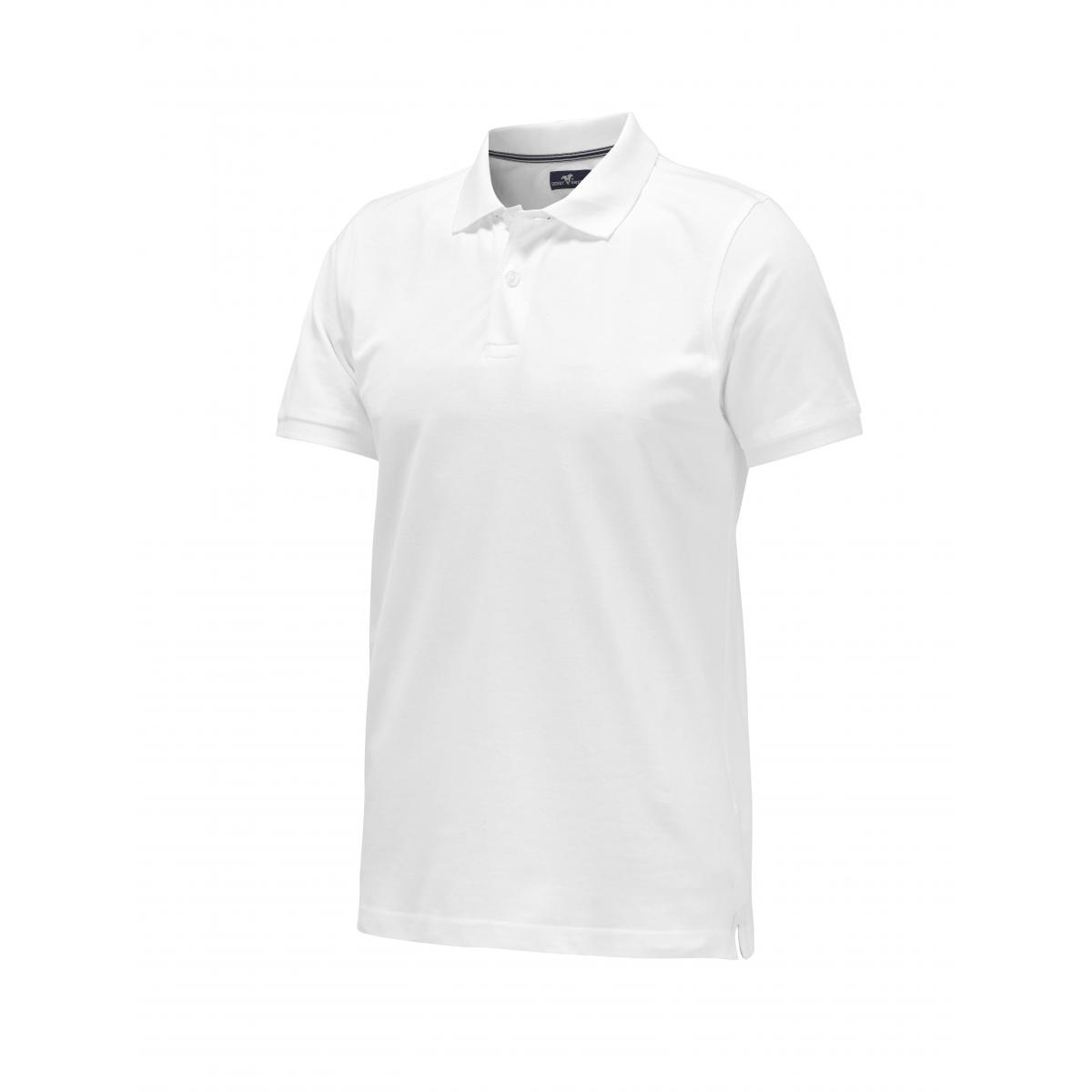 Piké med vävt nackband och sprund i sidan nedtill. Tre knappar i knappslån för dam och två för herr. Broderad logotyp i nacke. Damodellen är insvängd.