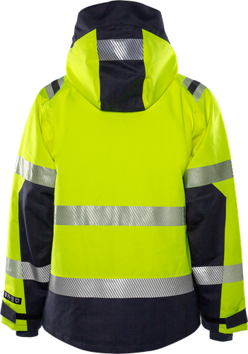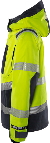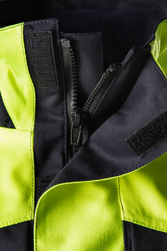 Multinorm / Inherent flamskydd / Vatten- och vindtät med andasfunktion / Tejpade sömmar / Smuts-, olje- och vattenavvisande / Avtagbar och reglerbar huva / Tvåvägs dragkedja ända upp i kragen under frontslå med kardborrelås / 2 bröstfickor med dold dragkedja, den ena med invändig D-ring / Kartficka med dragkedja och invändig telefonficka som nås även när plagget är stängt / 2 innerfickor, varav en med dragkedja / 2 fleecefodrade framfickor med dragkedja / Reglerbart ärmslut med invändig elastisk mudd / Förlängd rygg / Reglerbar nederkant med dragsko / Dragkedja i foder för transfer eller brodyr / Vattenpelare 10.000 mm / Andasfunktion RET 14,44 / Godkänd enligt EN 61482-1-2 APC 2, EN 61482-1-1 ELIM: 27 cal/cm², EN ISO 11612 A1 A2 B1 C1 F1, EN ISO 11611 A1 A2 klass 1, EN 1149-5, EN 13034 typ PB [6], EN ISO 20471 klass 2 för XS-S och klass 3 för M-4XL samt EN 343 klass 3/4 / Certifierad efter 25 tvättar / OEKO-TEX®-certifierad.