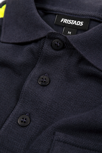 Inherent flamskydd / Kort knappslå / Bröstficka / Godkänd enligt EN 61482-1-2 APC 1, EN 61482-1-1 ELIM: 4,4 cal/cm² EBT: 6,2 cal/cm² (se ljusbågetabell för certifierade plaggkombinationer av EN 61482-1-2 klass 2 och EN 61482-1-1), EN ISO 11612 A1 B1 C1 F1 och EN 1149-5 / OEKO-TEX®-certifierad.