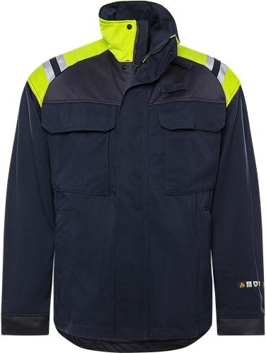 Utformad för svetsarbete / Svetsförstärkning av aramid framtill och på ärmar / Kardborreförslutning i nacken / Knytband bak / Resår i ärmslut / Godkänd enligt EN 61482-1-2 APC 1, EN 61482-1-1 ELIM: 8 cal/cm², EN ISO 11612 A1 B1 C1 E2 F1, EN ISO 11611 A1 klass 1 (se flam- och svetstabell för certifierade plaggkombinationer enligt EN 11612 C2, E3, F2 och EN 11611 A1 klass 2) och EN 1149-5 / Ska bäras tillsammans med plagg som har samma certifieringar / Certifierad efter 50 tvättar / Testad för industritvätt enligt ISO 15797 / OEKO-TEX®-certifierad.