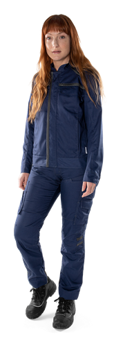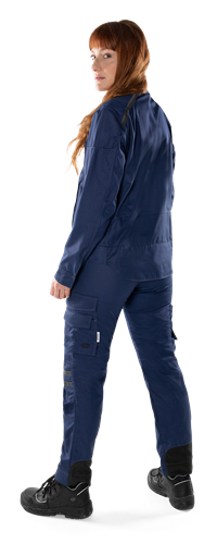 Miljödeklarerade dambyxor för yrken inom service och industri. Arbetsbyxor som är tillverkade med minsta möjliga miljöpåverkan i ett mjukt, lätt och snabbtorkande material av återvunnen polyester och Tencel™ lyocell. Har EPD (Environmental Product Declaration). Koncept: Skarup