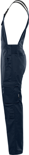 Delvis återvunnet material / Miljödeklarerad (EPD) / Mekanisk stretch / Reglerbara elastiska hängslen / Bröstficka med lock med kardborrefäste / Ribbstickade stretchpartier i midjan / Gylf med dragkedja / 2 framfickor / 2 bakfickor / Tumstocksficka och verktygsficka / Benficka med hälla för id-kortshållare under lock med dold tryckknapp / Förböjda knän / Benlängden kan förlängas 5 cm / Godkänd enligt EN 13758-2 UPF 40+ UV-skydd / Testad för industritvätt enligt ISO 15797 / OEKO-TEX®-certifierad / EPD reg.nr 13206 på environdec.com
