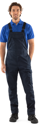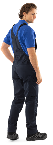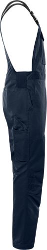 Hängselbyxor i ett lätt och slitstarkt material som är delvis tillverkat av återvunnen polyester. Bekväma arbetsbyxor med mekanisk stretch och ribbstickad stretch i midjan som är godkända för industritvätt. Miljödeklarerad med EPD (Environmental Product Declaration). Koncept: Forsbo