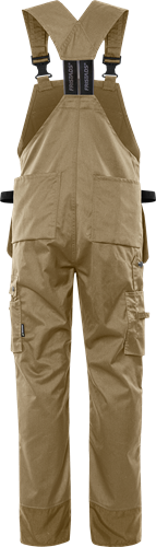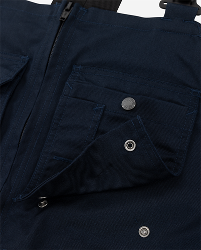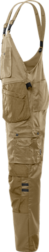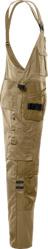 Hängselbyxor i slitstarkt material av återvunnen polyester och bomull. Bekväma arbetsbyxor för hantverkare med mekanisk stretch och mjuk borstad insida. Miljödeklarerad med EPD (Environmental Product Declaration).