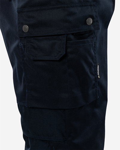 Delvis återvunnet material / Miljödeklarerad (EPD) / Mekanisk stretch / Reglerbara hängslen med resår bak / 2 löst hängande bröstfickor som kan knäppas fast, varav en med pennficka / 2 löst hängande spikfickor helt i CORDURA®, den ena med 3 mindre fickor och verktygshällor, den andra med extra ficka / 2 framfickor / 2 rymliga CORDURA®-förstärkta bakfickor / Hälla för id-kort eller nycklar fram / Dubbel förstärkt grensöm / Hammarhank på båda sidorna / Höger benficka med tumstocksficka, pennficka samt knapp och hälla för kniv / Vänster benficka med tryckknapp, telefonficka och extra ficka med hälla för id-kortshållare / Knäfickor i CORDURA® med öppning utifrån, uppifrån / Knäskydden i knäfickorna kan höjdjusteras / CORDURA®-förstärkta benslut / Reflexdetaljer vid knä / Godkänd enligt EN 14404 tillsammans med knäskydd 124292 / OEKO-TEX®-certifierad / EPD reg.nr 10773 på environdec.com