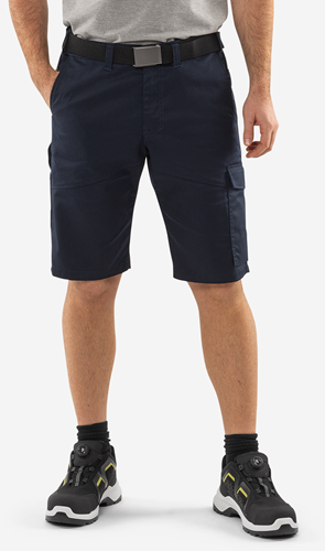 Shorts i ett lätt och slitstarkt material som är delvis tillverkat av återvunnen polyester. Bekväma arbetsshorts med mekanisk stretch och ribbstickad stretch i midjan som är godkända för industritvätt. Miljödeklarerad med EPD (Environmental Product Declaration). Koncept: Forsbo