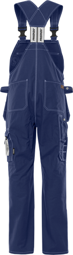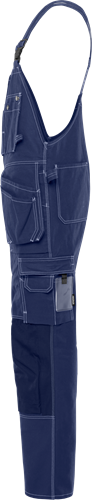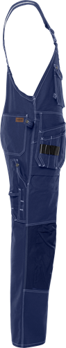 FAS® bomull / Reglerbara hängslen med resår bak / Tvåvägs dragkedja fram / 2 bröstfickor med lock, 2 knappar och hällor för kniv samt pennficka / 2 löst hängande CORDURA®-förstärkta undanstoppningsbara spikfickor – den ena med extra ficka, den andra med 3 mindre fickor och verktygshällor / 2 rymliga fram- och bakfickor / 2 hammarhankar, varav en justerbar / Tumstocksficka av CORDURA® med pennficka samt knapp och hälla för kniv / Benficka med lock, telefonficka och extra ficka med hälla för bifogad id-kortshållare / Knäfickor av CORDURA® med öppning utifrån / Knäskydden i knäfickorna kan höjdregleras / Godkänd enligt EN 14404 tillsammans med knäskydd 124292 / OEKO-TEX®-certifierad.