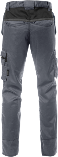 Mekanisk stretch / Mörkgrå reflexdetaljer / Dold knapp fram / 2 löst hängande CORDURA®-förstärkta spikfickor – den ena med tre mindre fickor och verktygshällor, den andra med extra ficka / 2 framfickor / 2 bakfickor / Dubbel förstärkt grensöm / 2 lårfickor / CORDURA®-förstärkt tumstocksficka med verktygsficka, pennficka samt knapp och hälla för kniv / Benficka med lock och kardborrelås, telefonficka, extra ficka med lock och D-ring / CORDURA®-förstärkta knäfickor med öppning utifrån / Knäskydden i knäfickorna kan höjdjusteras / CORDURA®-förstärkning i benslut / Godkänd enligt EN 14404 tillsammans med knäskydd 124292 (9200 KP) / Testad för industritvätt enligt ISO 15797 / OEKO-TEX®-certifierad / Kan förädlas med RFID-chip.