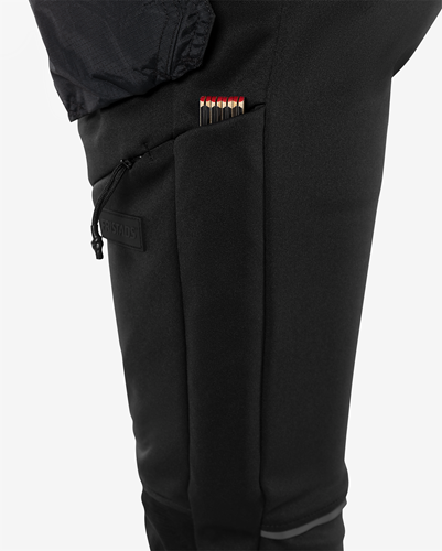 Mjukt material med 4-vägsstretch / Andasfunktion / Linning med bred resår / 2 löst hängande spikfickor i lättvikts ripstop-material, den ena med 3 mindre fickor och verktygshällor, den andra med extra ficka / Spikfickorna kan vikas in och gömmas i framfickor med dragkedja / 2 sidfickor / Dubbel förstärkt grensöm / Hammarhank / Bakficka med dragkedja / Tumstocksficka på vänster och höger sida / Lårficka med dragkedja / Slitstarka formstickade knäfickor med öppning utifrån / Knäskydden i knäfickorna kan höjdjusteras / Smalt benslut med dragkedja / Reflexdetalj på baksida av ben / Godkänd enligt EN 14404 tillsammans med knäskydd 124292 (9200 KP) / OEKO-TEX®-certifierad.