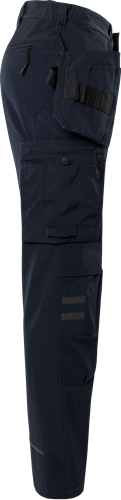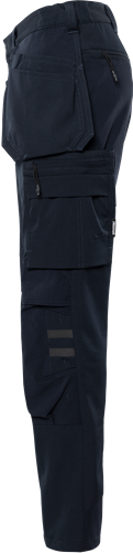 Hantverksbyxor helt i 4-vägsstretch för maximal rörelsefrihet. Lätta och smidiga arbetsbyxor med förstärkningar och knäfickor av slitstark ripstop stretch. Koncept: Haverdal
