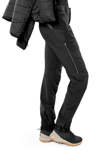 Helt i 4-vägsstretch / Delvis återvunnet material / Slitstark ripstop-stretch fram, på stuss och bakre lår / YKK-dragkedjor / Svarta reflexdetaljer / Elastisk linning / Förlängd bälteshälla / Dubbel förstärkt grensöm / 2 framfickor / 2 bakfickor med dold dragkedja / 2 lårfickor med tryckknapp och bälg, varav en med mobilficka / Mesh-ventilation med dragkedja längs lårens utsida / Vattenavvisande förstärkning på insidan av bensluten / Reglerbara benslut med tryckknappar / Dold kängkrok / OEKO-TEX®-certifierad.