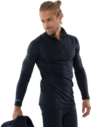 Polartec® Power Stretch® – elastisk smidig microfleece med 4-vägsstretch / Hög värmekapacitet / Slät utsida och borstad insida / Transporterar fukt / Hög andasfunktion / Torkar snabbt / Polokrage med kort dragkedja / Kontrastsömmar / OEKO-TEX®-certifierad.