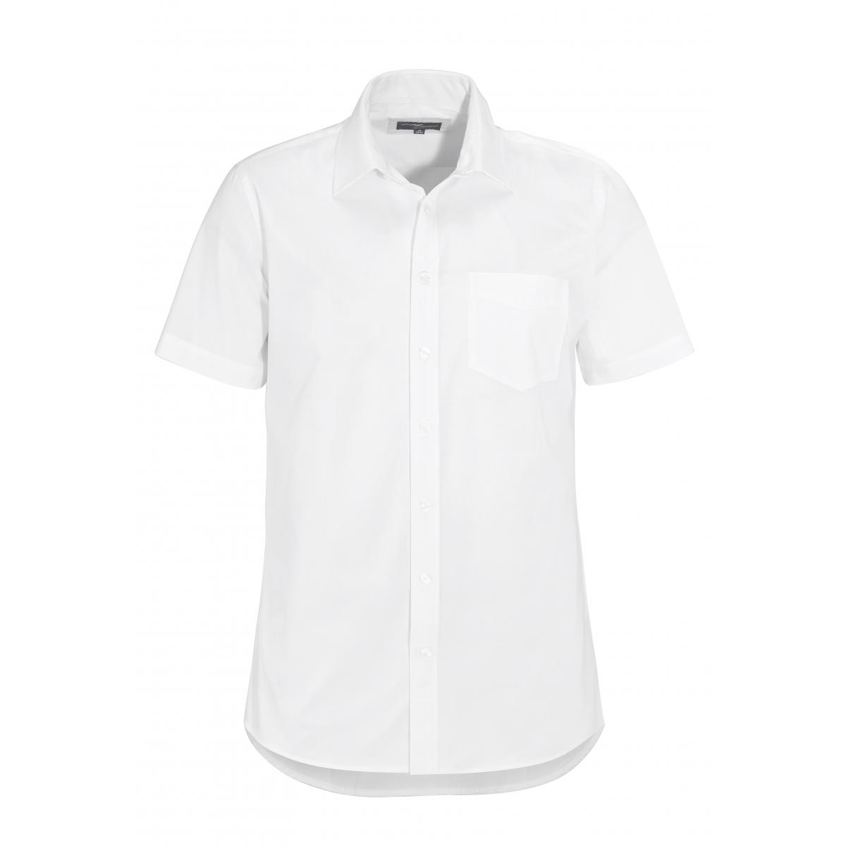 Kortärmad poplinskjorta i blandmaterial. Bröstfickor, ton i ton knappar och turn down-krage på alla modeller. Dammodellen är insvängd för bättre passform.