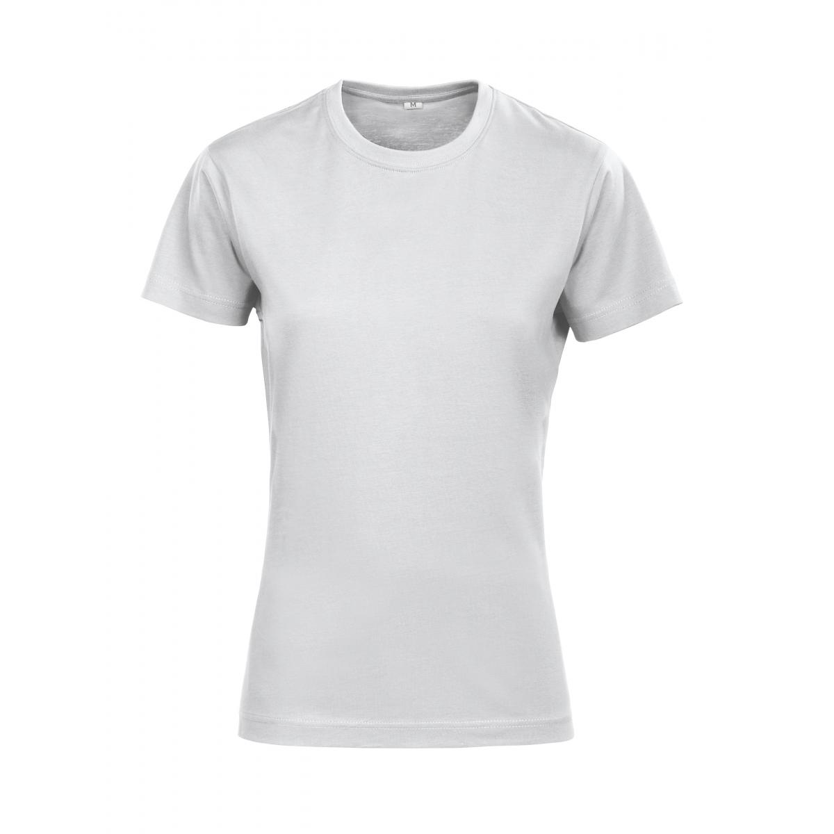T-shirt i skön singeljersey. Smal halsribb med elastan och nackband. Herrmodellen är rundstickad. Dammodellen har en insvängd passform med sidsöm.