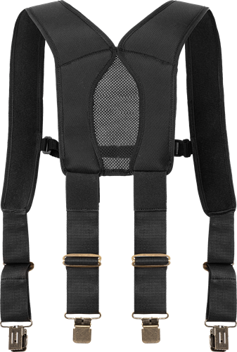 För användning med Ergo verktygsbälte 100045, mjukt verktygsbälte, rem eller annat verktygsbälte / Ventilerande ryggdel / Axelremmar med mjuk insida som inte halkar av vid knästående / Pennfickor / Quick-snap fickhållare / Reglerbar bröstrem / Slitstarka clips / Storlek kroppslängd: S/M ca 165-185 cm och L/XL ca 185-200 cm. Reglerbara remmar fram S/M 11-18 cm, L/XL 17-31 cm. Reglerbara remmar med elastisk infällning bak S/M 15-23 cm, L/XL 22-36 cm.
