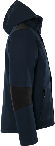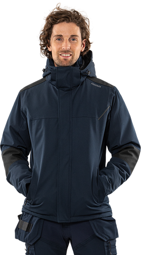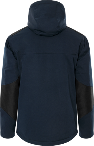 Delvis återvunnet material / Material med 4-vägsstretch / Vind- och vattentätt material, ej tejpade sömmar / Förstärkning på axlar och ärmar / Quiltfoder / Avtagbar huva med dragsko / Fleecefodrad krage / Dragkedja ända upp i kragen under frontslå med dolda tryckknappar / Dold vertikal ficka med dragkedja, som nås även när plagget är stängt / 2 framfickor med dragkedja / 2 innerfickor med dragkedja / Innerficka nertill i mesh / Invändig ribbstickad mudd i ärmslut / Dragsko i nederkant / Förlängd rygg / Mörkgrå reflexdetalj / Dragkedja i foder för transfer / Vattenpelare > 3.000 mm / Godkänd enligt EN 342 / OEKO-TEX®-certifierad.