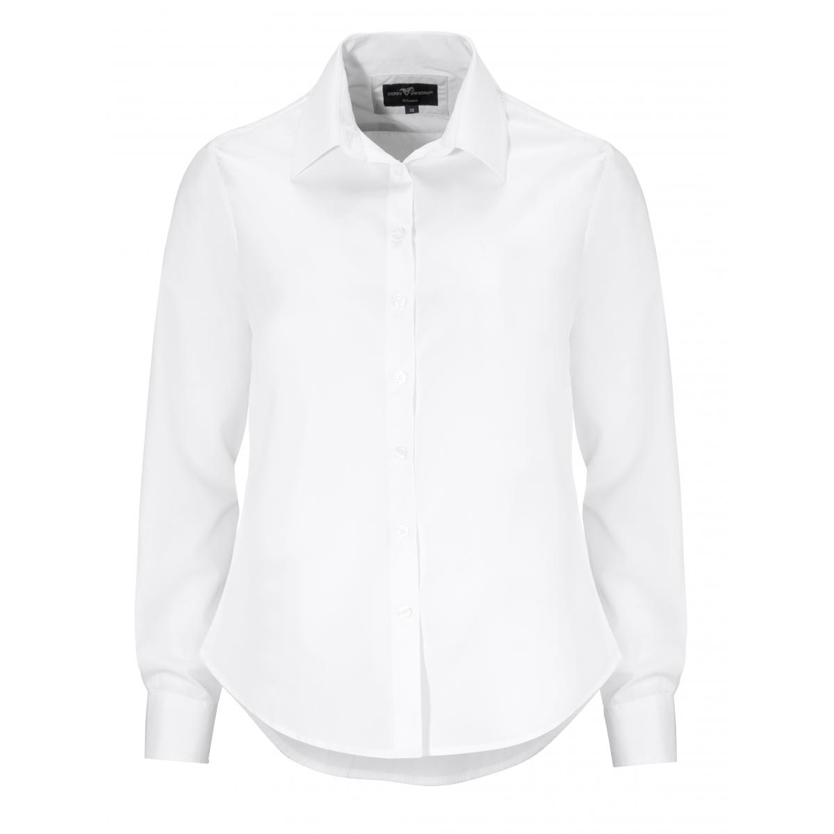 Strykfri bomullskjorta i P/D poplin med turn down-krage och knappar som går ton i ton på alla modeller. Regular har bröstficka och här finns även modell för dubbel manschett på vit skjorta samt extra lång ärm. Dammodellen är insvängd för bättre passform.