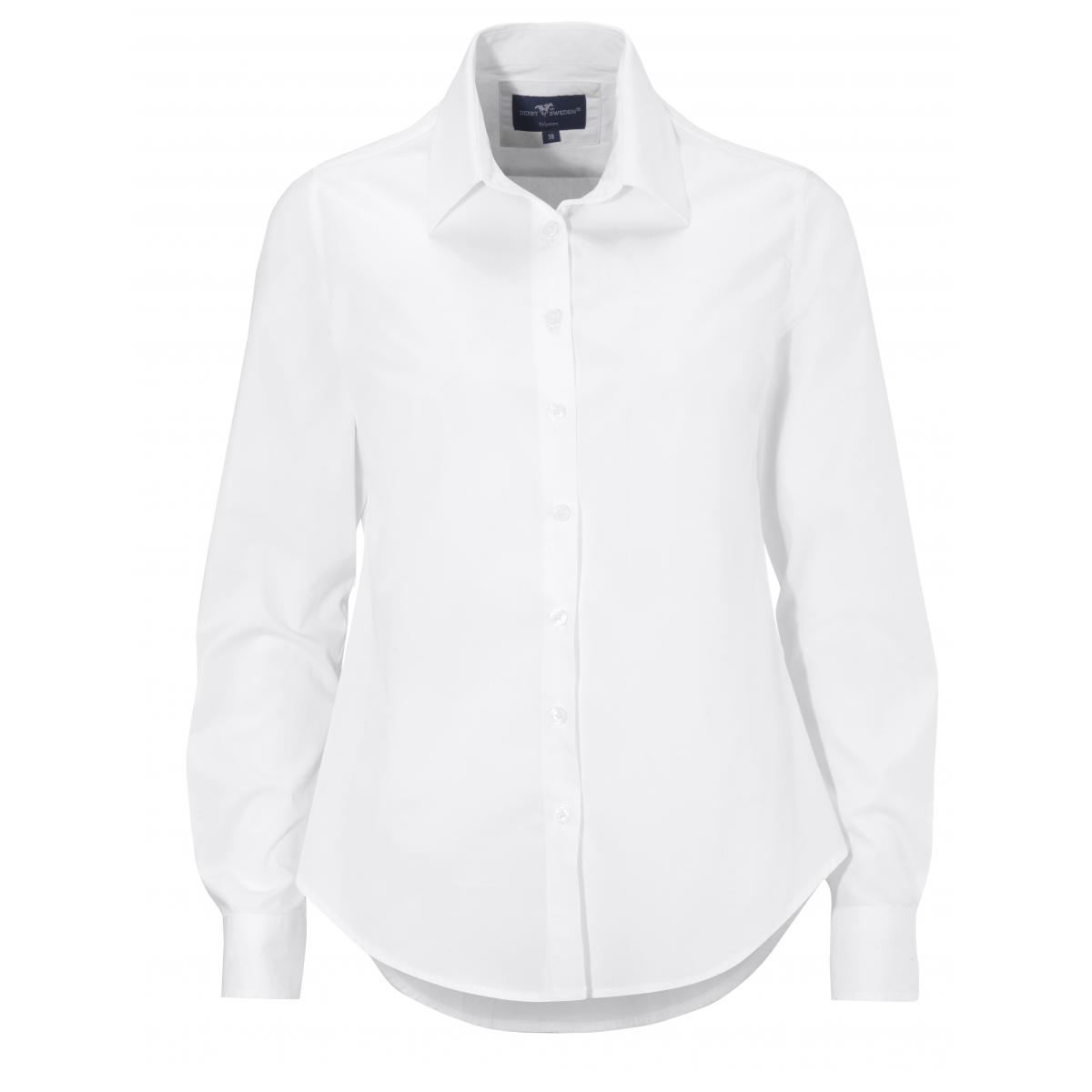 Långärmad bomullskjorta i P/D poplin, ton i ton knappar och turn down-krage. Brodyr som går ton i ton i nacken.