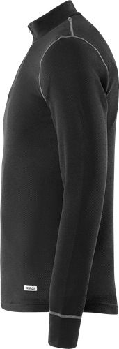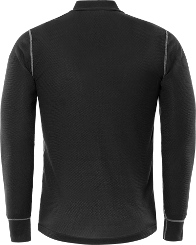 Transporterar fukt / Hög andningsförmåga / Snabbtorkande / Polokrage med kort dragkedja / Ribbstickad mudd i ärmslut / Släta kontrastsömmar som inte skaver / OEKO-TEX®-certifierad.