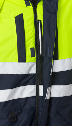 Airtech®, vatten- och vindtät med andasfunktion / Quiltfodrad / Avtagbar och reglerbar fodrad huva / Fleecefodrad krage / Tvåvägs dragkedja ända upp i kragen under frontslå / 2 bröstfickor med dragkedja / Id-kortsficka / Kartficka med invändig telefonficka, som nås även när plagget är stängt / 2 innerfickor med dragkedja / Reglerbar dragsko i midjan / Reglerbart ärmslut / Invändig elastisk mudd med tumgrepp i ärmslut / 2 framfickor med dold dragkedja / 2 bakfickor med lock / 2 rymliga benfickor med lock / Tumstocksficka med extra ficka / Förböjda ben / Knäfickor med öppning inifrån och reglerbar höjd av knäskydden / Reglerbara benslut med dragkedja upp till knä / Snölås / Dragkedja i foder för brodyr och dekal / Vattenpelare 20.000 mm / Andasfunktion Airtech®-material RET <15 / Tejpade sömmar / Godkänd enligt EN ISO 20471 klass 3, EN 342, EN 343 klass 4/1, materialet godkänt enligt EN 343 4/4 och EN 14404 tillsammans med knäskydd 124292 / Certifierad efter 25 tvättar / OEKO-TEX®-certifierad.