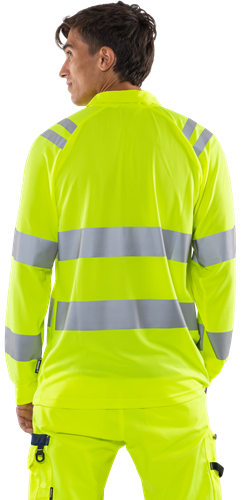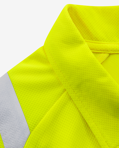 Återvunnet funktionsstickat material / Stretchreflexer / Krage i dubbelt material / Raglanärm med mudd i dubbelt material / Infällningar i sidorna och ärmarna utan reflex, för ännu bättre rörelsefrihet / Godkänd enligt EN ISO 20471 klass 3 / Certifierad efter 25 tvättar / OEKO-TEX®-certifierad.